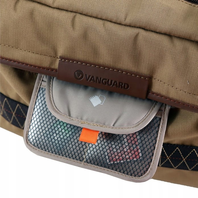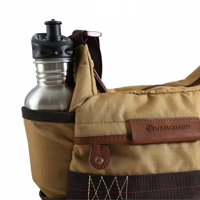 Kieszeń jest zamykana na suwak osłonięty zakładką materiałową ze skórzanym wykończeniem. Boczne kieszonki w torbie Vanguard zmieszczą butelkę z wodą, rękawiczki lub inne podręczne przedmioty.